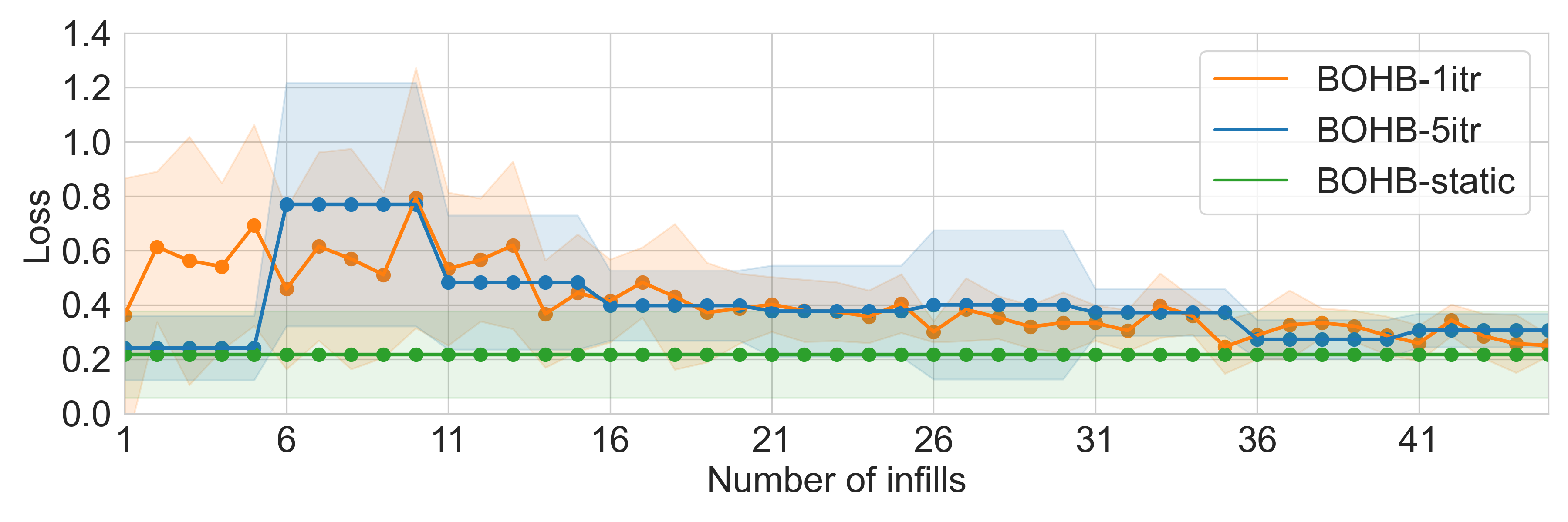 These are plotted versus the number of infill samples added (10 to 55 samples).