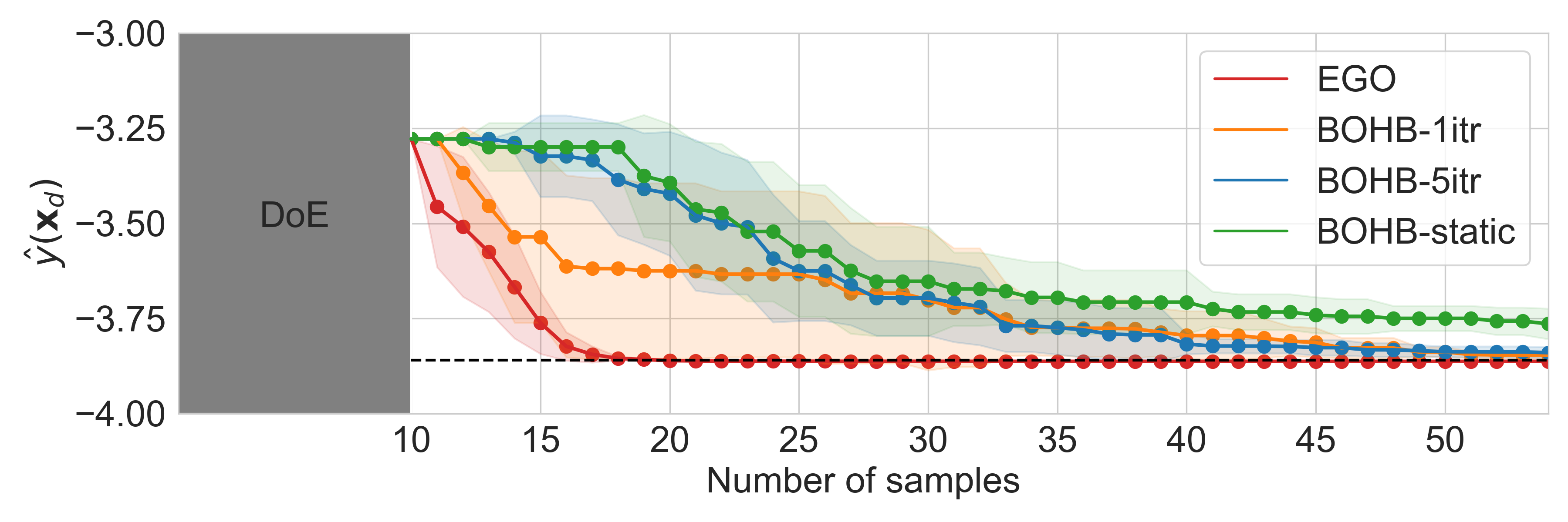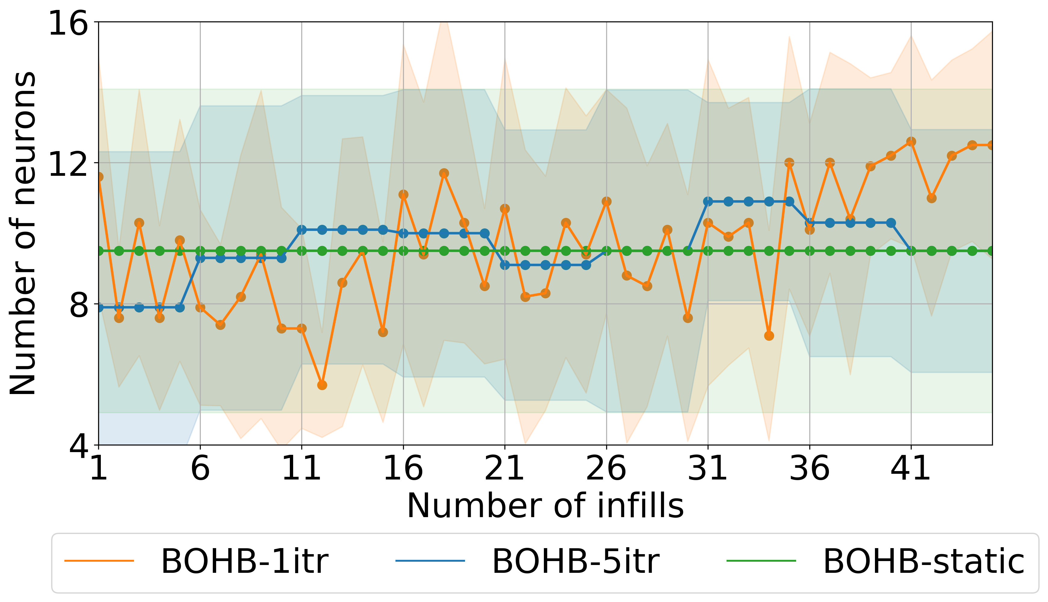 MeanVariancePlot.py: This script generates mean and variance plots, where solid lines represent mean values and shaded areas indicate one standard deviation. The key metrics plotted include:Optimum found using the NN